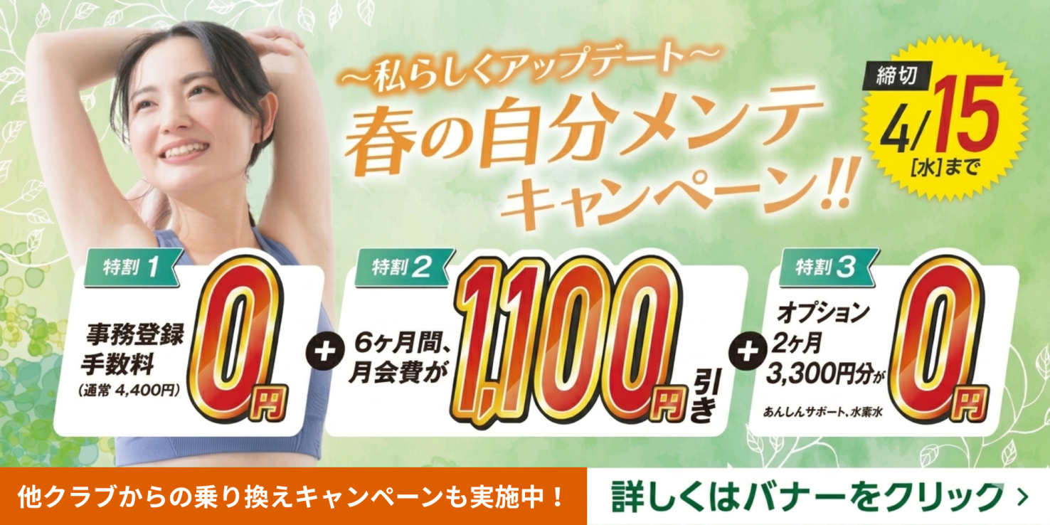 フィットネス:春の自分メンテキャンペーン実施中!