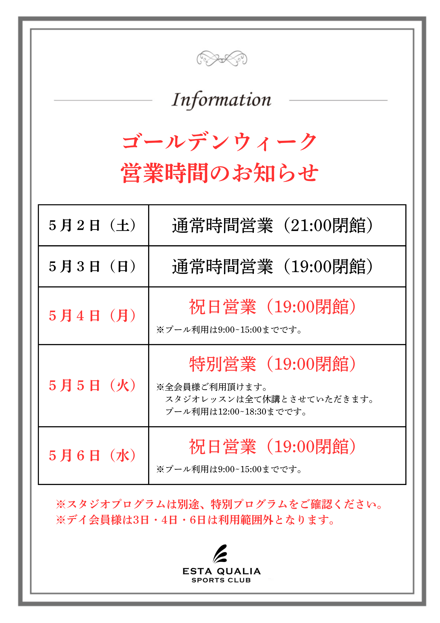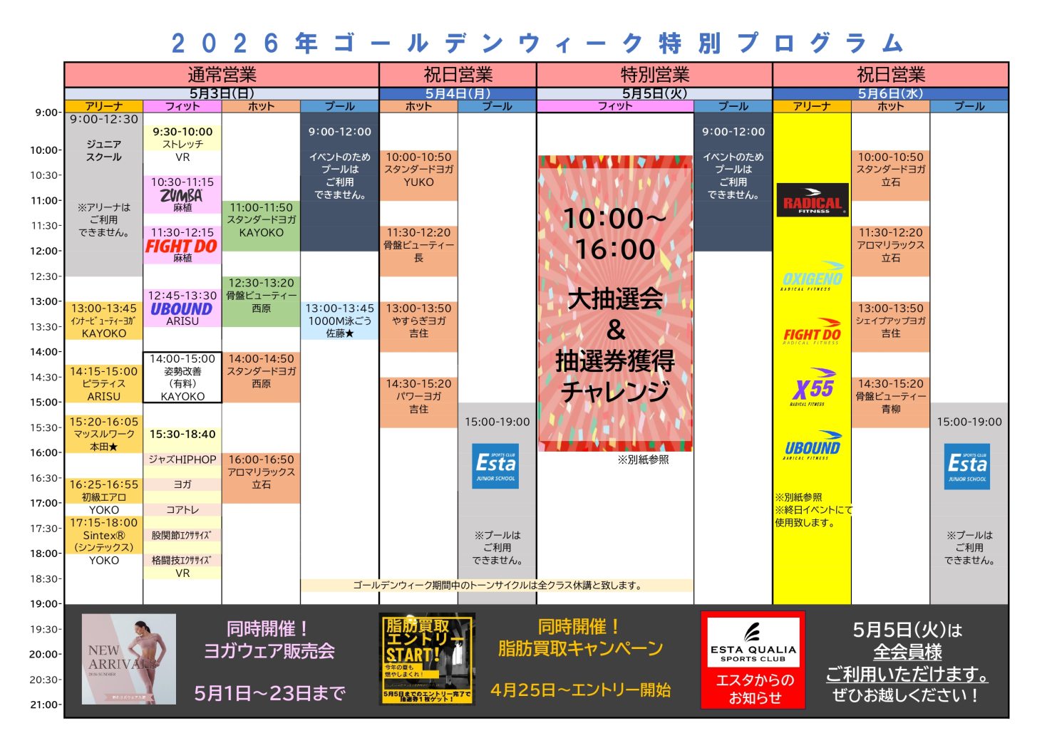 2026年ゴールデンウィーク営業時間とプログラムのお知らせ